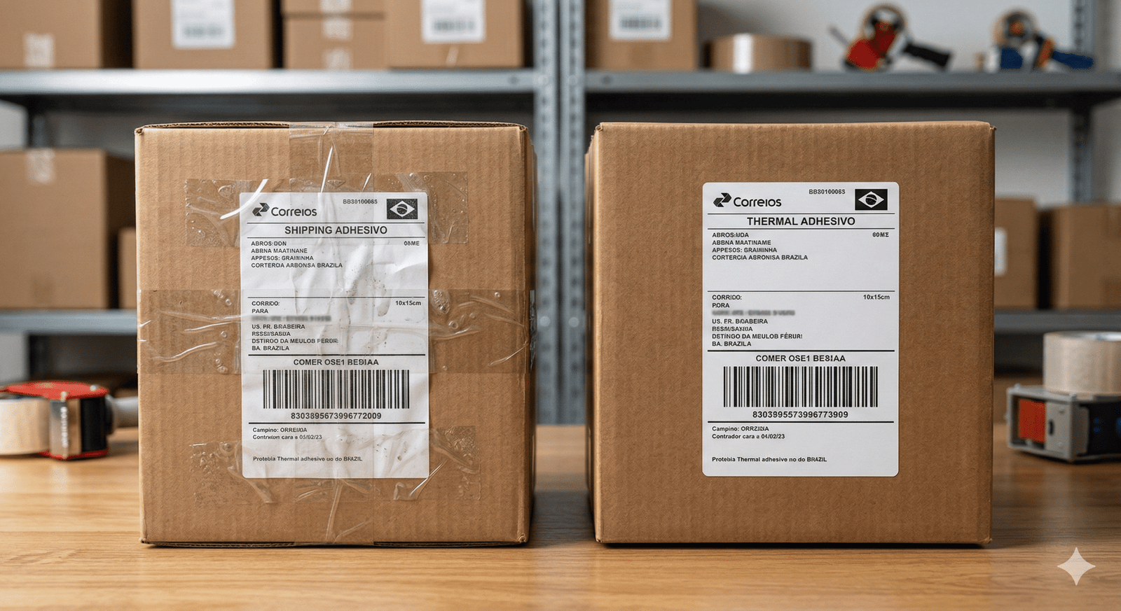 - Adesão: O adesivo térmico é projetado para não soltar das caixas de papelão, algo que acontece frequentemente com etiquetas coladas com cola ou fita.